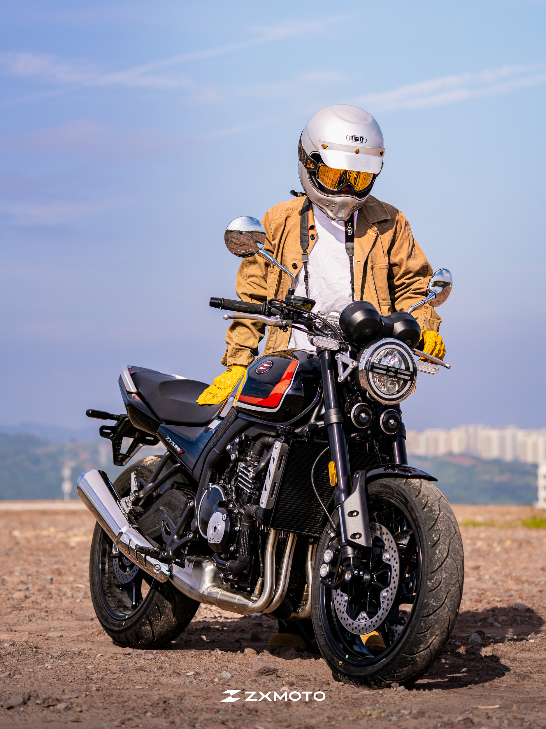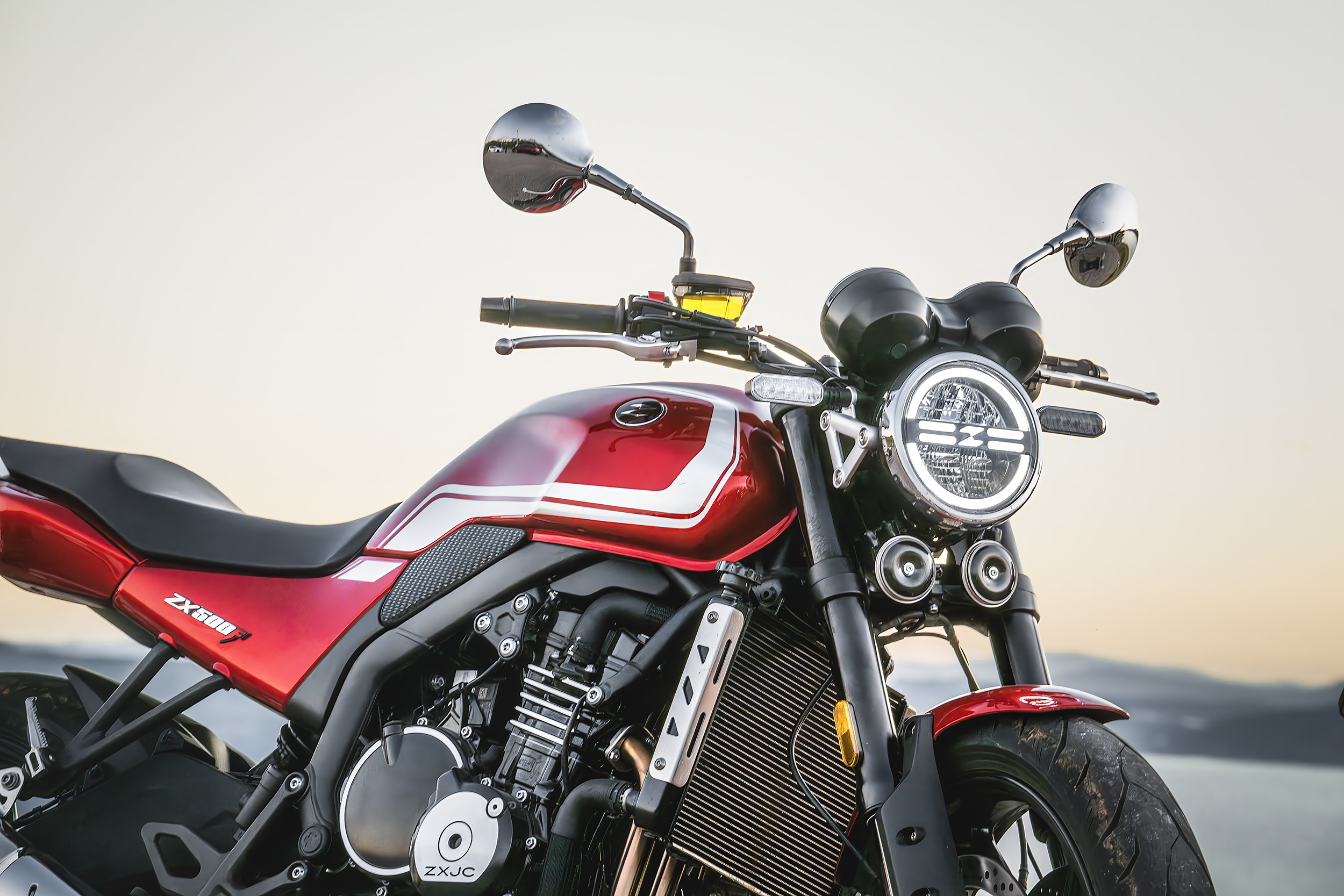 The 500F's aesthetic is a direct tribute to iconic Japanese naked bikes, featuring a timeless round LED headlight and a clean tail section. Its thoughtfully designed ergonomics are highlighted by a comfortably padded seat and a relaxed riding posture that feels natural and relaxed. The low, 795mm seat height instills confidence at a stop, making it an exceptionally approachable machine for both new and seasoned riders.